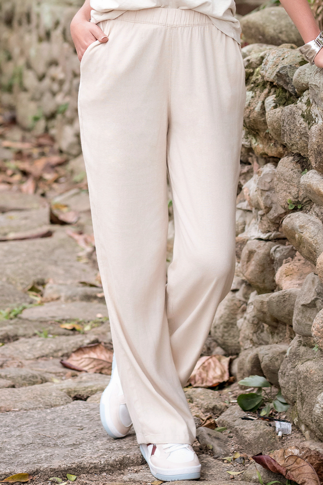 A Calça Feminina Linho Hiatto é a definição de conforto aliado à versatilidade. Confeccionada em tecido encorpado de linho com viscose e elastano, proporciona toque natural, caimento elegante e liberdade de movimentos. O elástico na cintura garante praticidade e ajuste perfeito, enquanto os bolsos frontais trazem funcionalidade ao modelo.