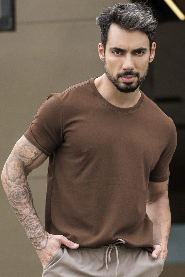 O bordado sutil no peito, com o logo "H", adiciona um toque de exclusividade e refinamento. É perfeita para quem busca uma camiseta moderna e elegante, sem abrir mão do conforto.