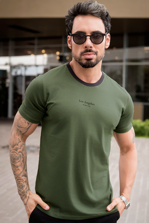 A Camiseta Masculina Hiatto é a escolha ideal para quem busca estilo e conforto em qualquer ocasião. Confeccionada em meia malha, fio 30.1 penteado, 100% algodão, garante toque suave e leve durante todo o dia. Seu design moderno traz estampa minimalista combinada à gola em ribana contrastante, adicionando um detalhe sofisticado e versátil para elevar composições casuais com autenticidade.